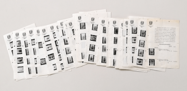 En estas prácticas de la época, la fotografía analógica era insustituible para las tareas de registro de las obras que formaban parte de las exposiciones. Esto explica que este documento contenga, como herramientas de identificación de cada pieza junto a su ficha, pequeñas impresiones en placa de gelatina, generadas a partir de las hojas de contacto, conservando el tamaño original de los fotogramas de los rollos de 35 mm utilizados para realizar las impresiones fotográficas.