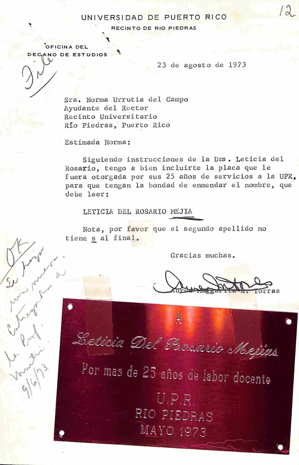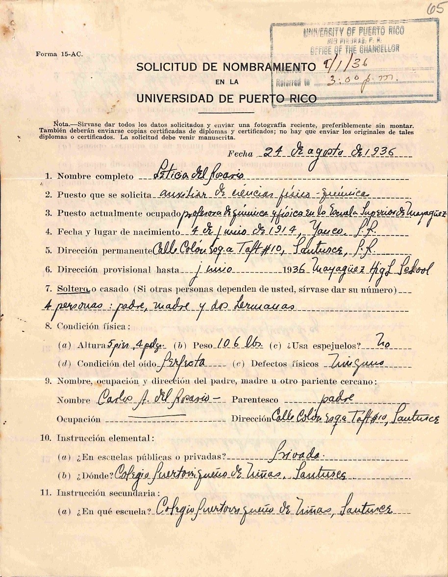 «Expediente de Personal de la académica y Profesora Emérita, Dra. Leticia del Rosario».