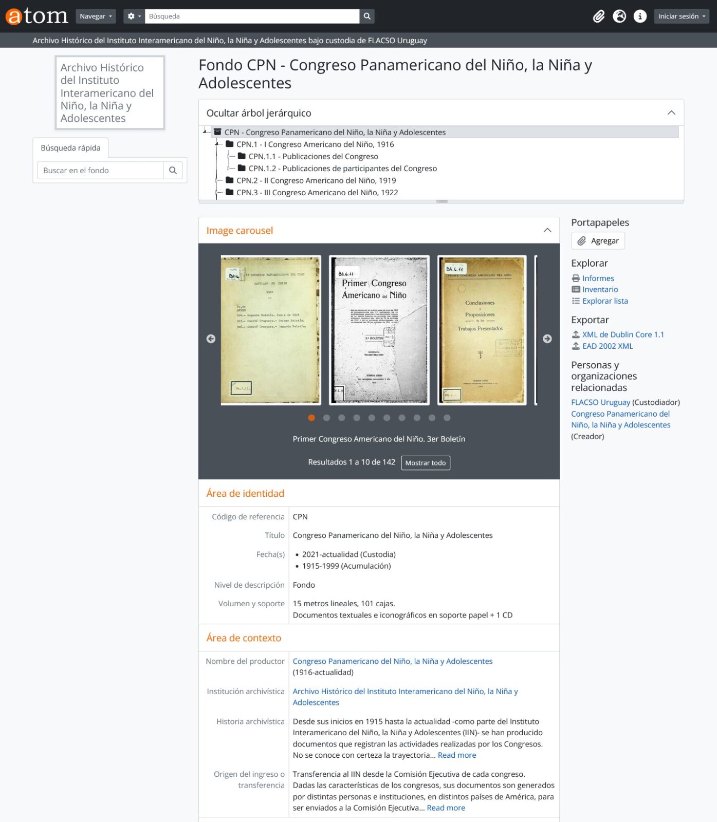 Este proyecto llevado a cabo por FLACSO Uruguay y el IIN digitalizó 15 metros del Archivo Histórico del IIN, acervo documental reconocido por la UNESCO como Memoria del Mundo en el año 2024. El fondo Congreso Panamericano del Niño, la Niña y Adolescentes (1916-1999) se encuentra a partir de este momento accesible en archivoiinflacso.uy. Este sitio permitirá a investigadores del mundo entero acceder a todo lo que se dijo, publicó y se realizó respecto a las infancias a través de estos Congresos por los países miembros. Las búsquedas en la plataforma AtoM permiten disgregar por palabras o conceptos para rastrear temáticas a lo largo de los distintos Congresos, para comprender los diversos tratamientos que se han realizado hacia temáticas vinculadas a las infancias latinoamericanas.