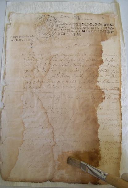 Por tal razón el objetivo del Laboratorio de Fuentes Históricas es garantizar la conservación y la permanencia de los expedientes, por medio de proyectos que se enfocan en aplicar tratamientos de intervenciones con la finalidad de reparar los documentos, para que sean asequibles al público interesado.