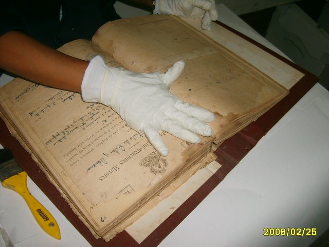 - La documentación deteriorada fue enviada al taller de restauración para ser tratada con procedimientos adecuados.