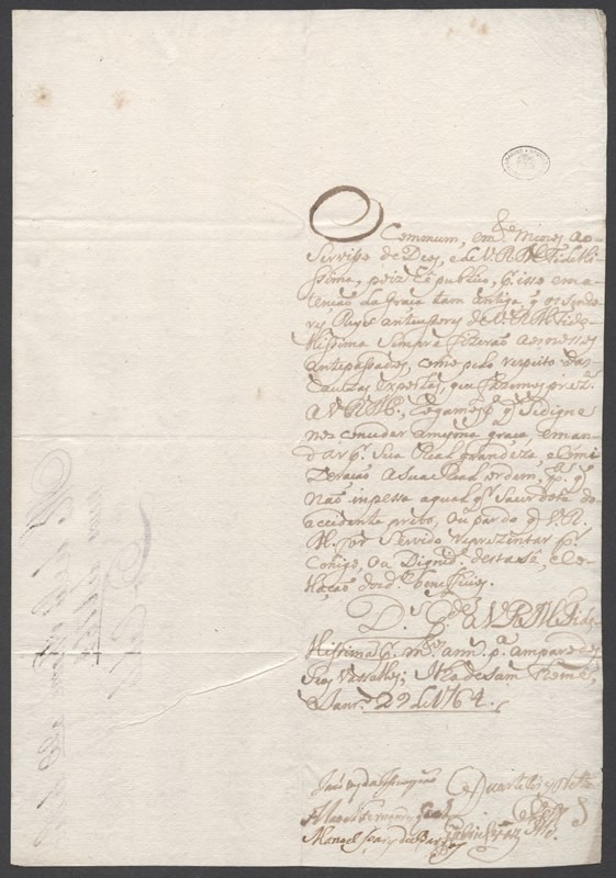 - 29-01-1764, São Tomé – Carta do Cabido de São Tomé a D. José I sobre haver pardos, pretos e brancos da terra na Sé