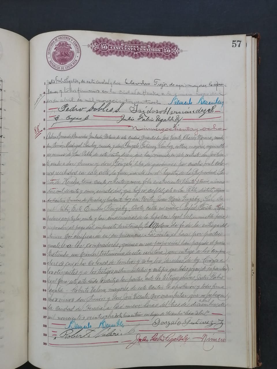 - 2018-055_01 Fotografía de escritura de compaventa de José Vicente Chacón Moreira, Simón Madrigal Sánchez y Gonzalo Gutiérrez Sánchez.