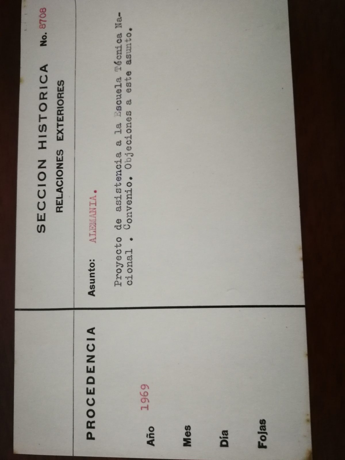 - Fotografía de ficheros del fondo Relaciones Exteriores