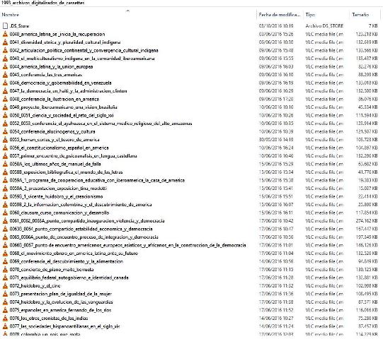 Con objetivo de llevar a cabo la conservación del fondo de audio (archivo de la palabra) de los primeros años de la casa de América, que consiste en grabaciones únicas en cintas de casetes, para esto se realiza el análisis y catalogación de sus contenidos, con el objetivo de que sean consultados, ya que forman parte del patrimonio inmaterial de la institución.