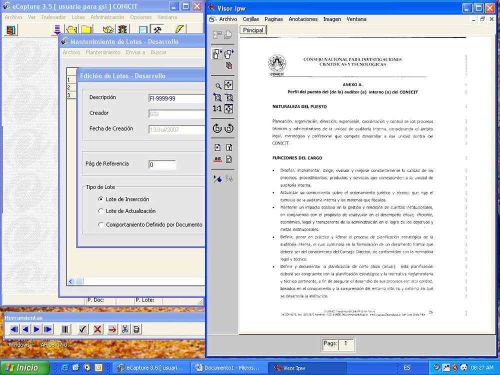 - Pantallas del Sistema de Administración y Digitalización de Documentos adquirido