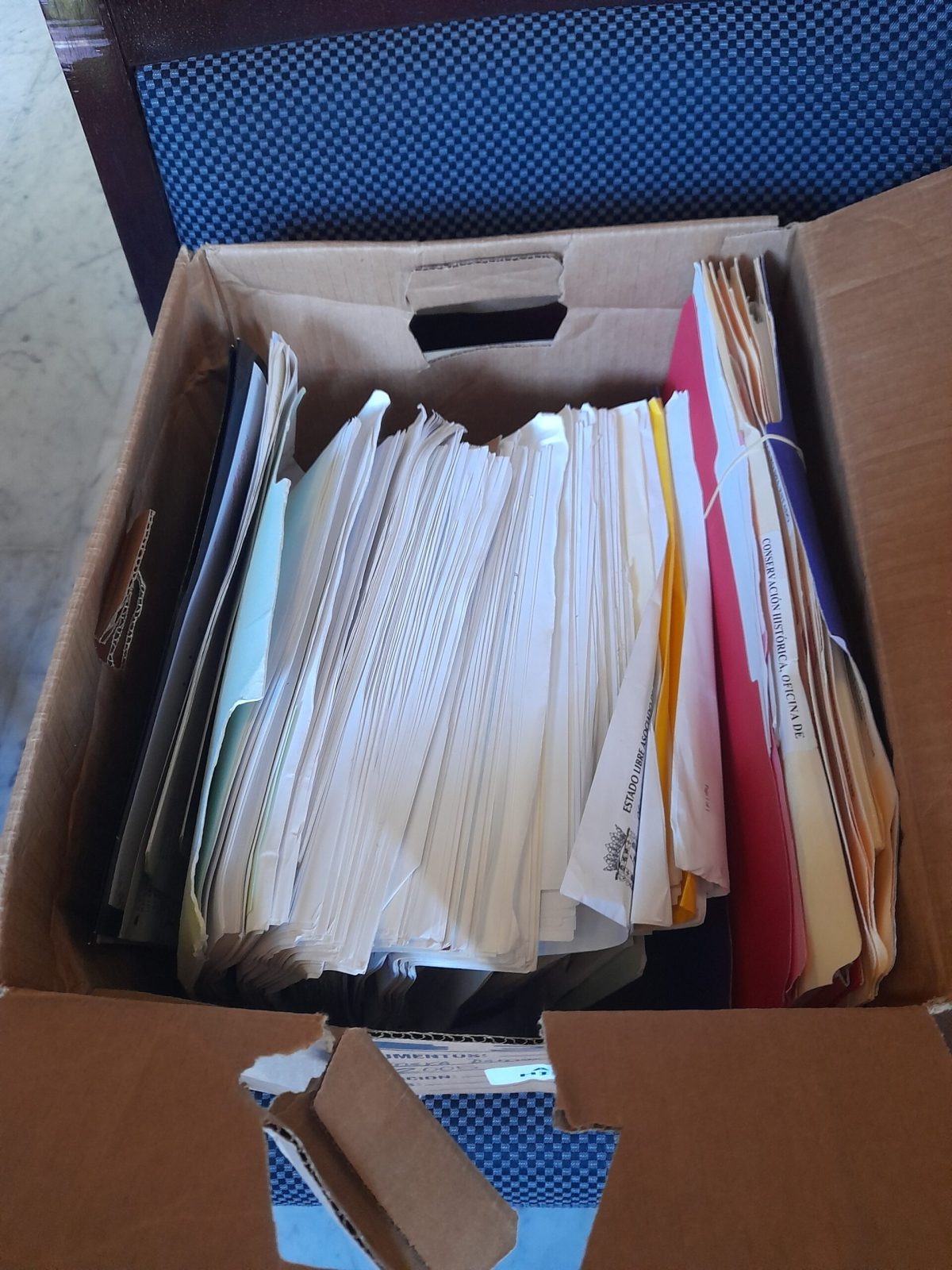 - Aspecto del interior de una caja con expedientes a ser trabajados.