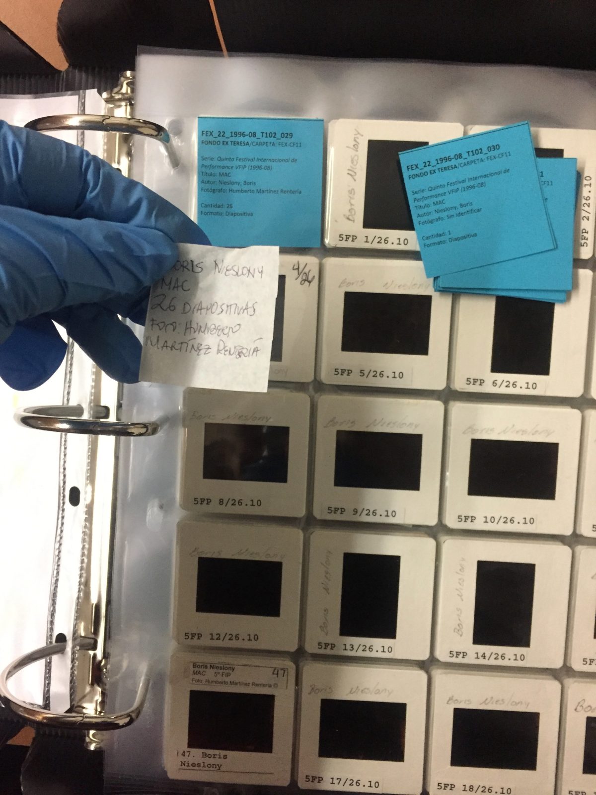 - Cambio de material fotográfico ya estabilizado y registrado a carpetas de conservación