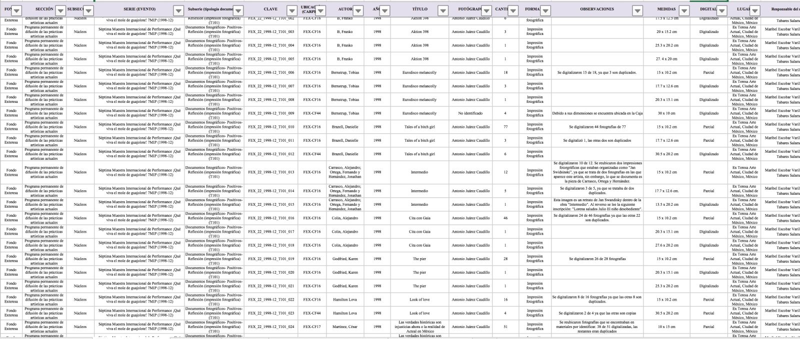 La ejecución del proyecto representó un aporte significativo en el reconocimiento y descripción de sus documentos fotográficos y videográficos del fondo Ex Teresa.