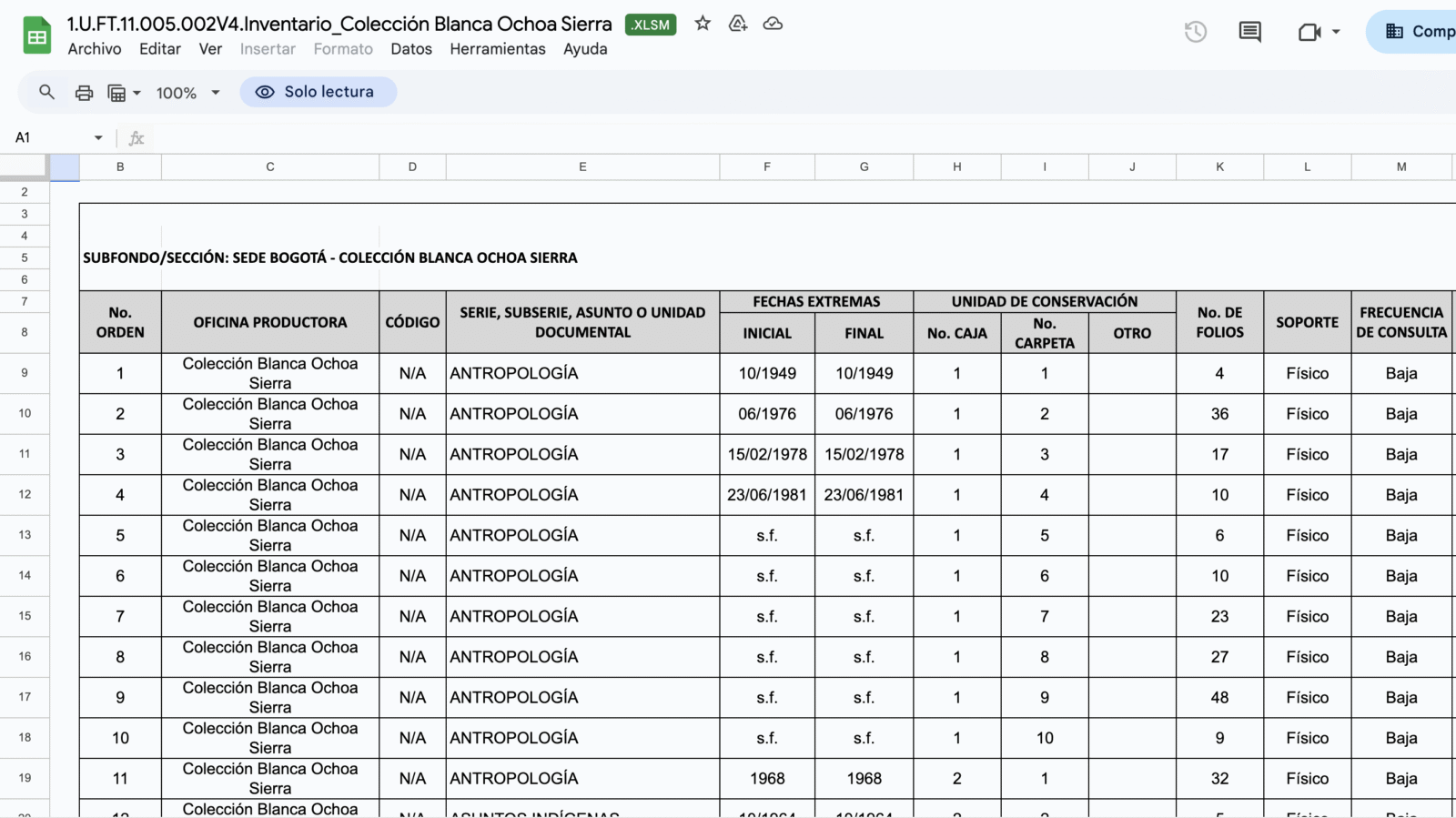La organización de la colección de Blanca Ochoa Sierra es fundamental para garantizar su preservación, acceso y difusión como fuente clave para la historia de la antropología en Colombia. Al tratarse de una pionera en el campo, su archivo contiene documentos valiosos que reflejan el desarrollo de la disciplina, las redes académicas y los debates intelectuales de su época. Su adecuada clasificación permite a investigadores, docentes y estudiantes consultar materiales inéditos que enriquecen el conocimiento sobre el patrimonio antropológico del país. Además, fortalece la memoria institucional de la Universidad Nacional de Colombia y resalta el papel de las mujeres en la ciencia. La puesta en valor de esta colección contribuye a la apropiación social del patrimonio documental, promoviendo su uso en proyectos educativos y culturales.