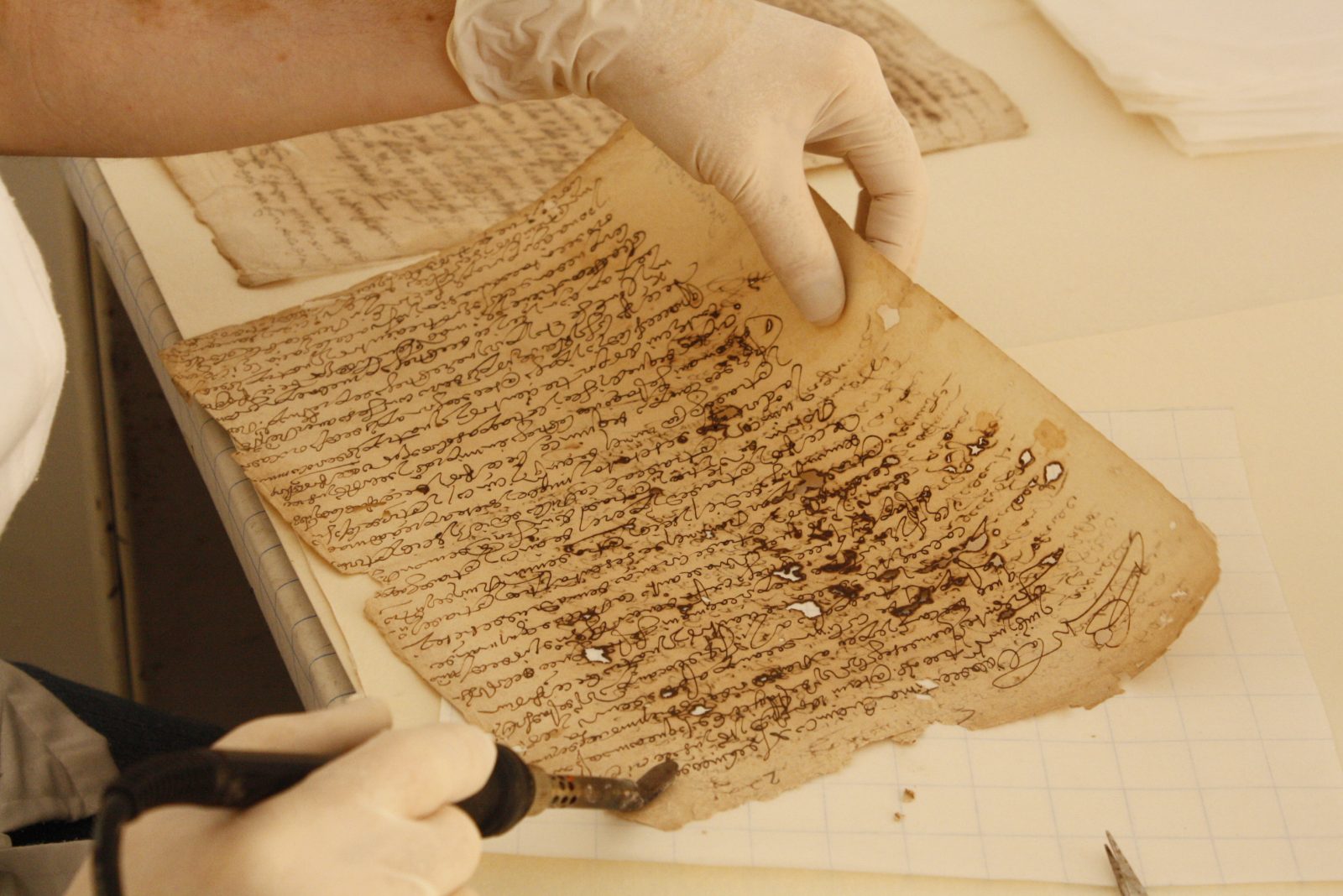 - Restauración: Los documentos se habían visto afectados por tintas ferrosas, hongos y sensación de humedad en el papel, termitas