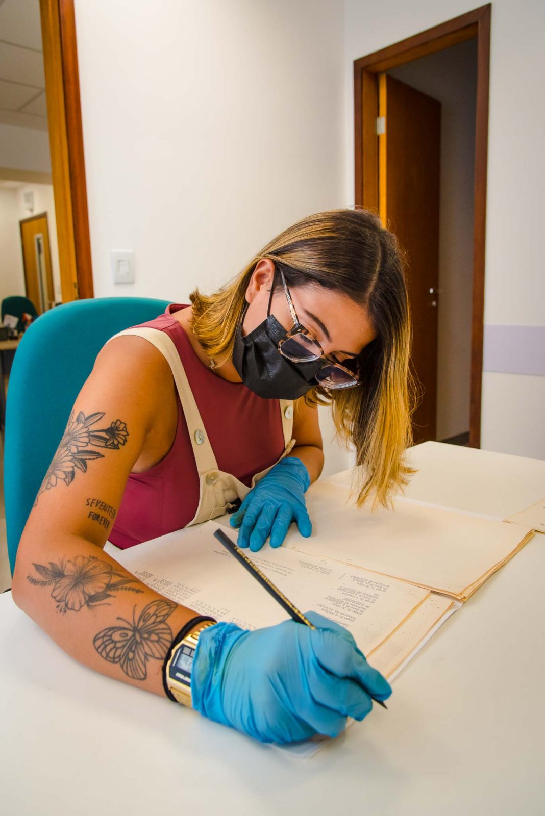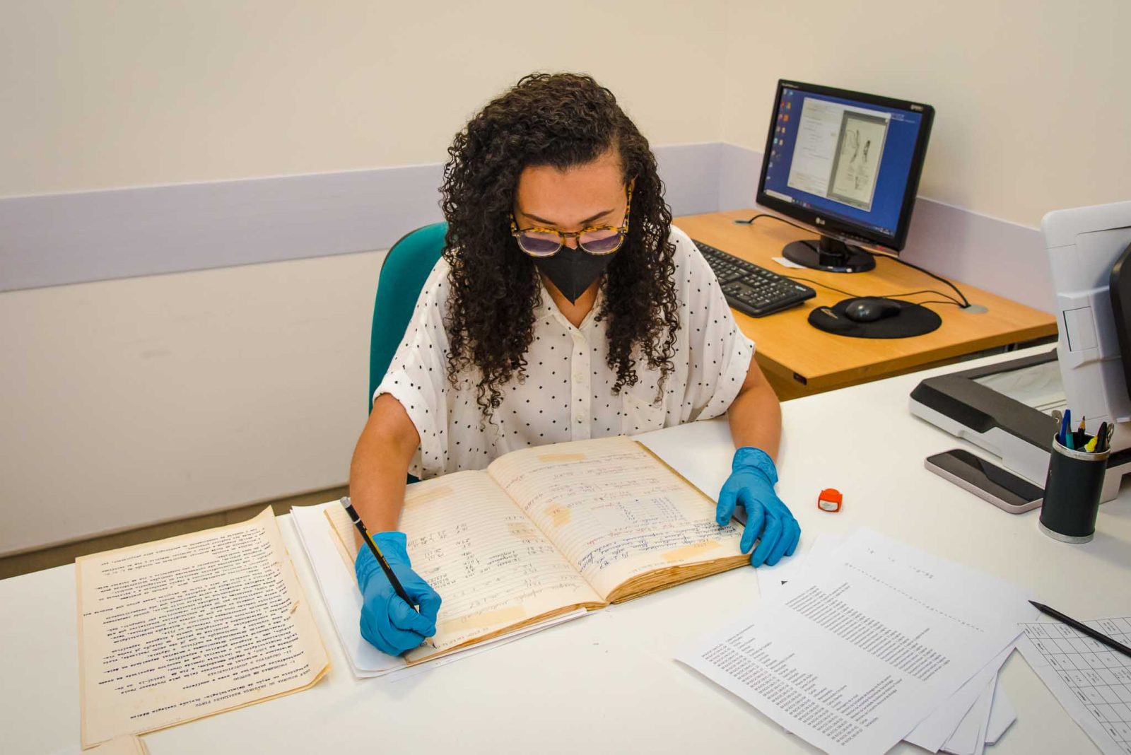 - Bolsista Bettina Martins prepara documentos textuais para digitalização