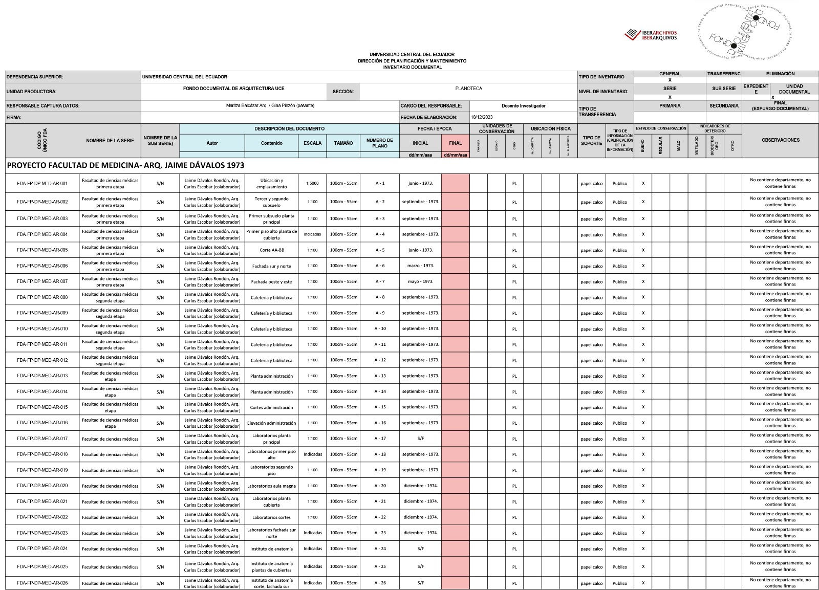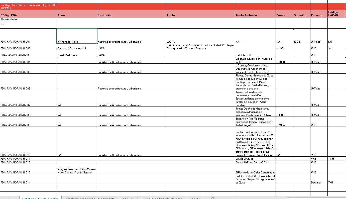 El proyecto busca salvaguardar , permitir el libre acceso y difundir de manera pública, material inédito para investigadores a través de una base de datos digital de la Planoteca de la Dirección de Planeamiento Físico de la Universidad Central del Ecuador y el Fondo Audiovisual de Arquitectura y Urbanismo (LACAV) de la Universidad Central del Ecuador tanto para especialistas en arquitectura como en otros campos interesados en las formas culturales, transmisión del conocimiento y documentación histórica de la ciudad y el territorio ecuatoriano. Del Fondo de la Planoteca, se intervinieron documentos que datan desde 1952 hasta la década de 1990, con el objetivo de recuperar, valorar y conservar preventivamente, documentos históricos del inicio de la concepción y materialización del Campus Universitario y sus edificaciones; mientras que del Fondo Audiovisual se intervinieron soportes audiovisuales que datan desde la década de 1970 hasta la primera década del 2000, evidenciando las prácticas académicas de la Facultad de Arquitectura y Urbanismo, que han documentado directa o indirectamente diversas formas culturales por su preocupación en ciudades y territorios ecuatorianos.