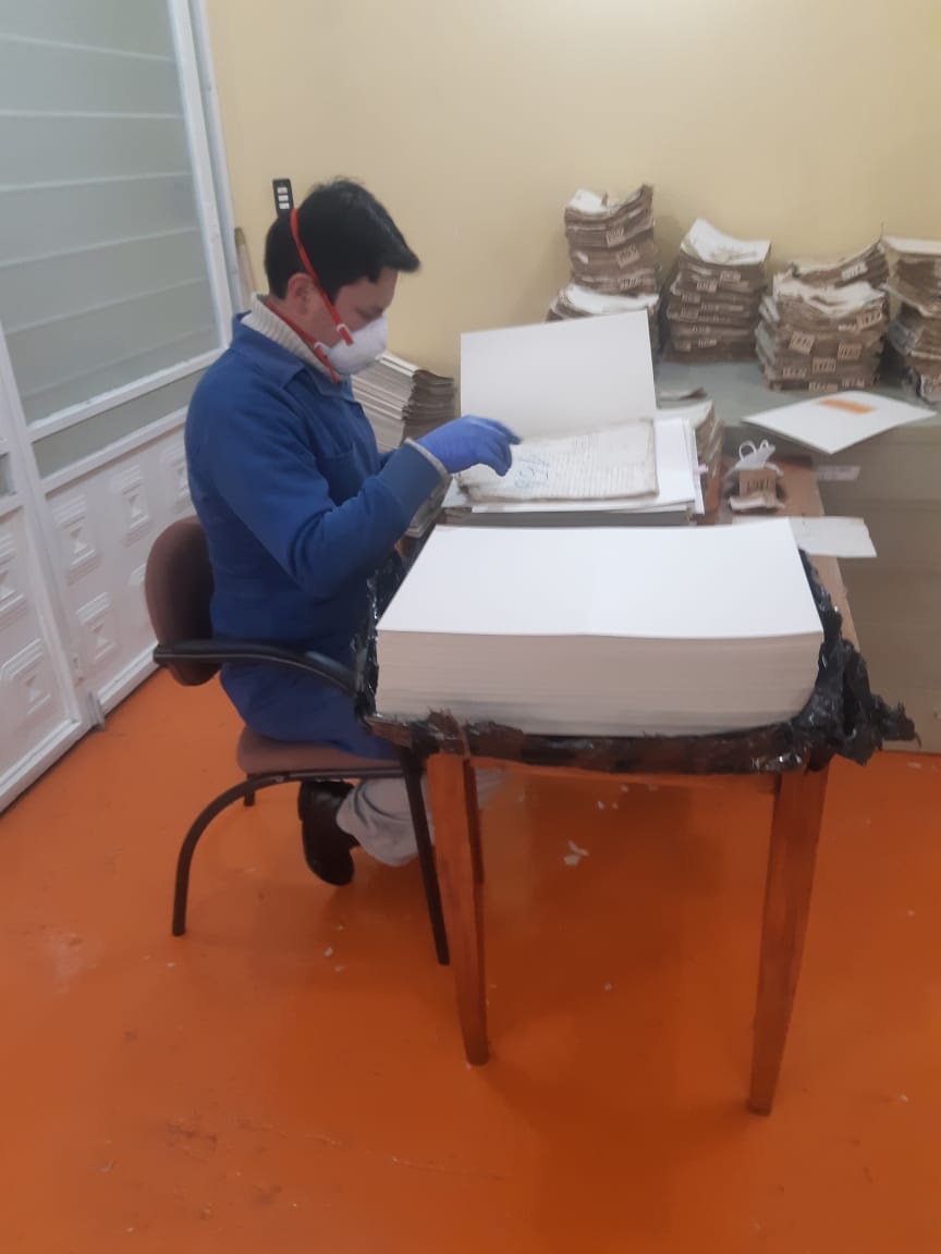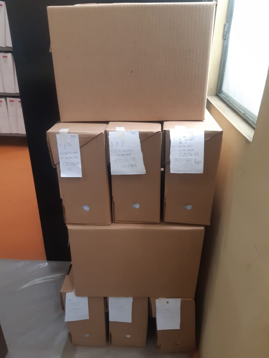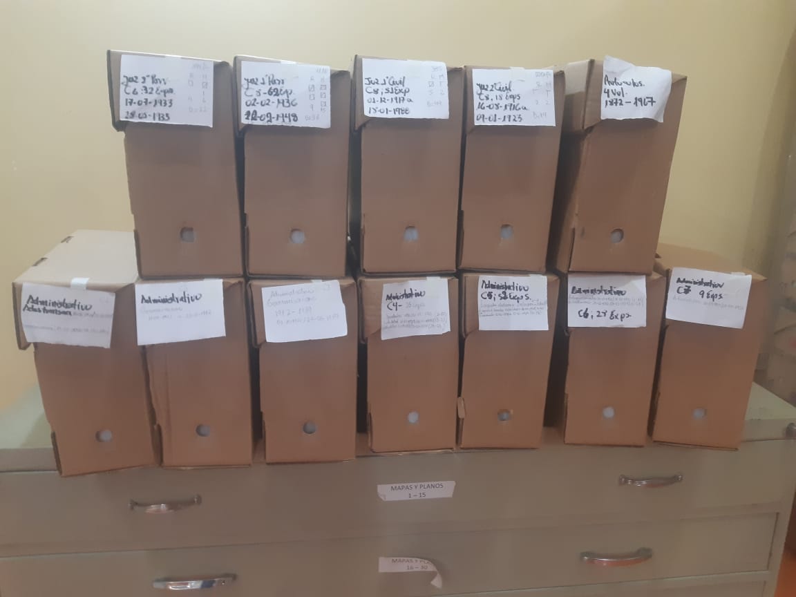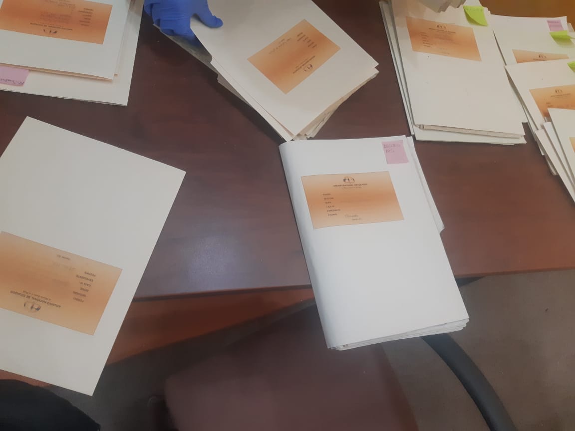 - Se procesaron 3902 expedientes del Fondo Notarial, Sección Juicios, Juzgado 1ª Parroquial, Notarías 1ª y 2ª del cantón Píllaro, resguardados y protegidos en 97 contenedores con su respectiva identificación, como consta en la Matriz de Inventario.