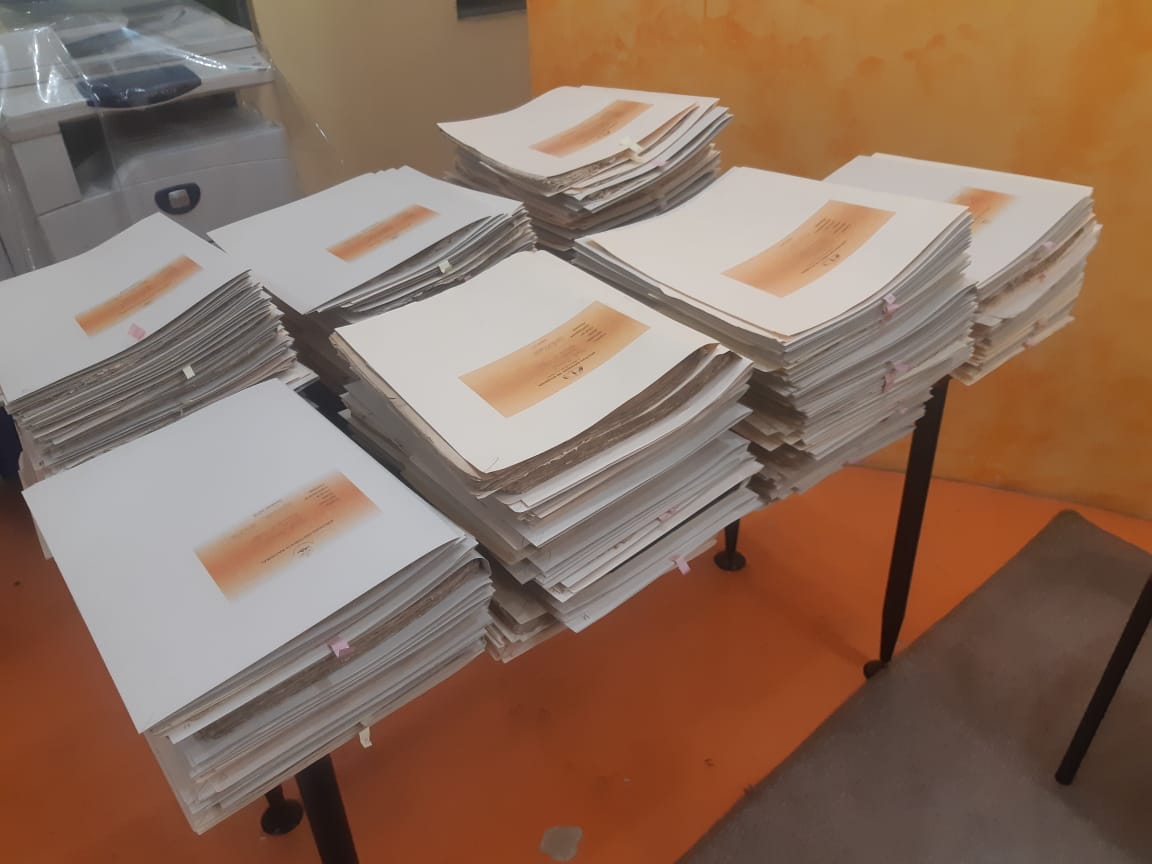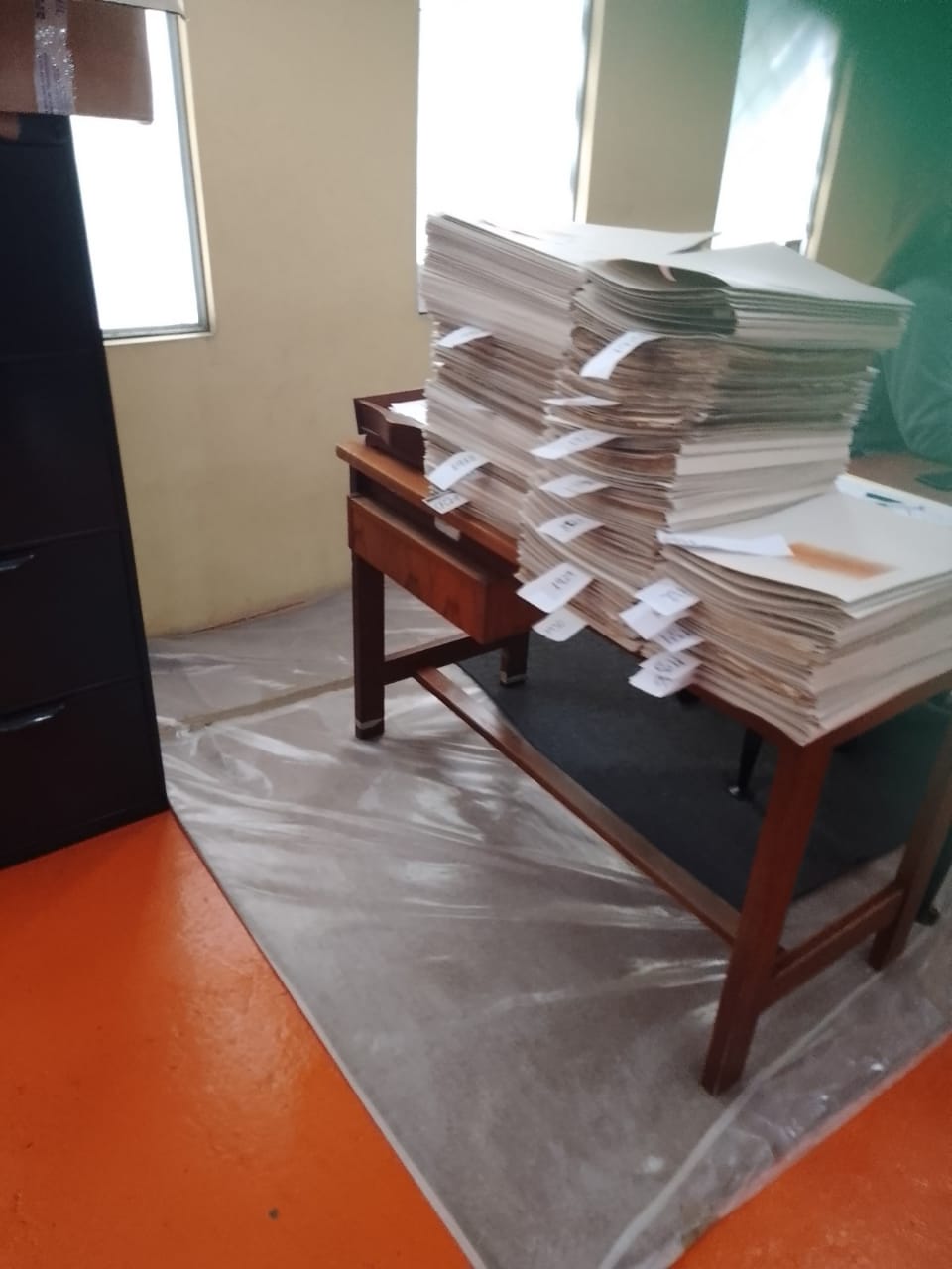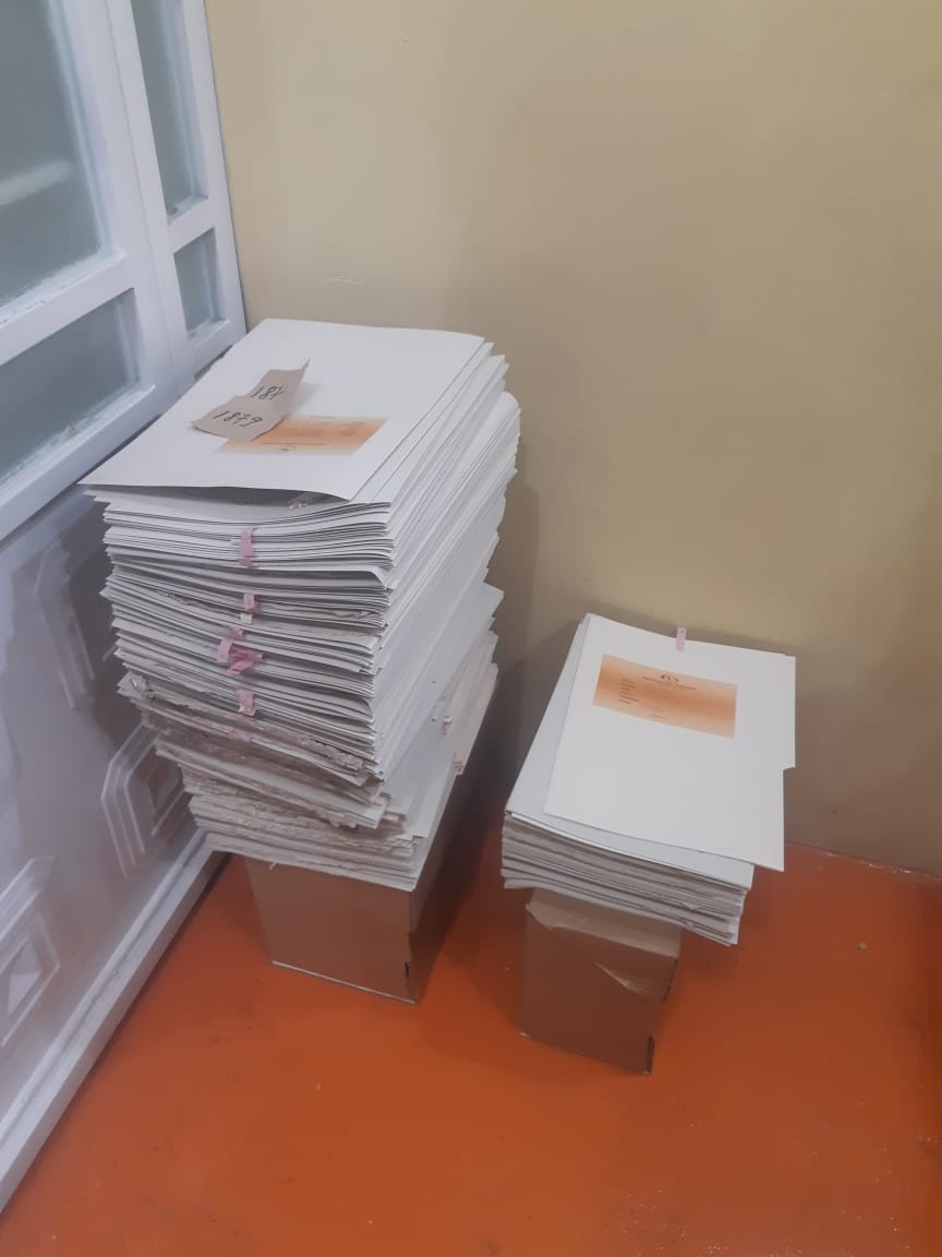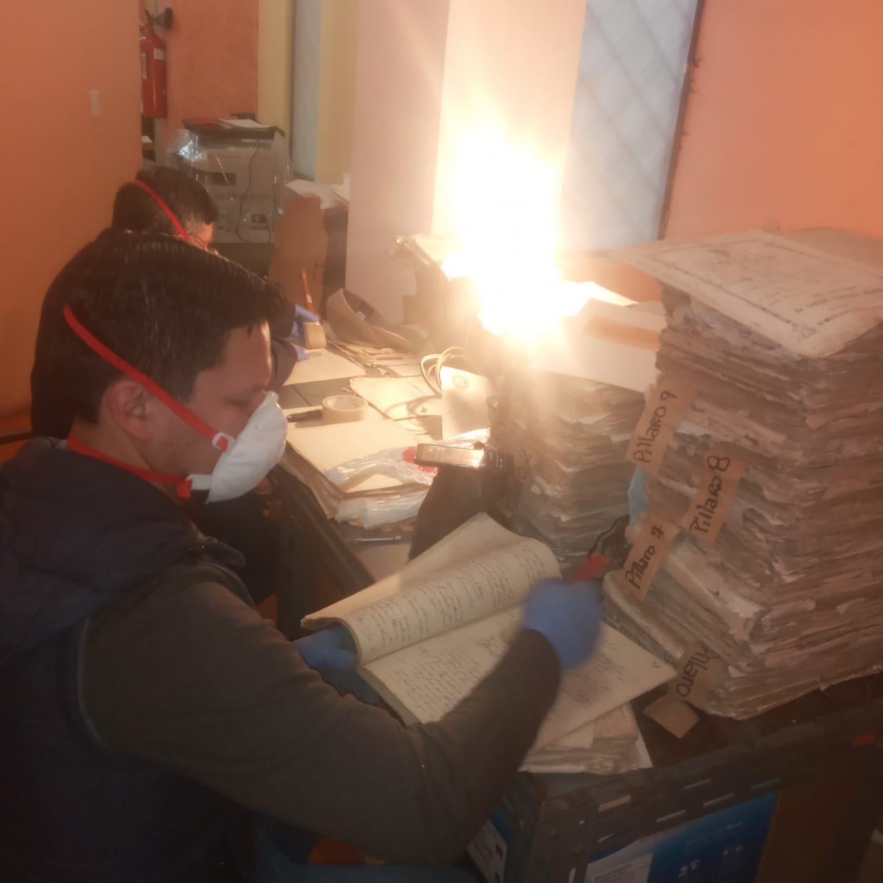 - Se procesaron 3902 expedientes del Fondo Notarial, Sección Juicios, Juzgado 1ª Parroquial, Notarías 1ª y 2ª del cantón Píllaro, resguardados y protegidos en 97 contenedores con su respectiva identificación, como consta en la Matriz de Inventario.