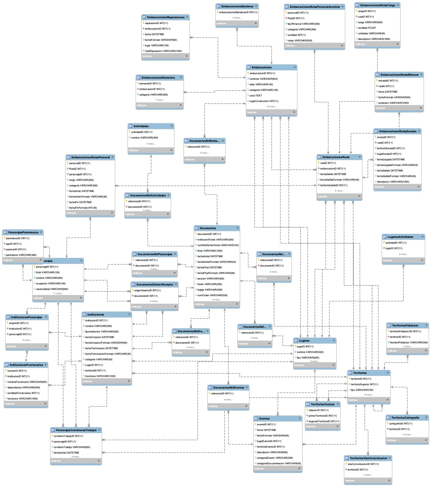 - Esquema general del modelo relacional de la base de datos correlacional PIMDC