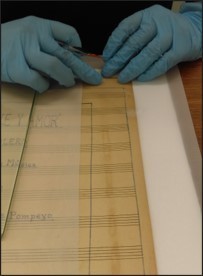 - 2018-072-009 – Cada partitura fue colocada en un papel de guarda temporal.
