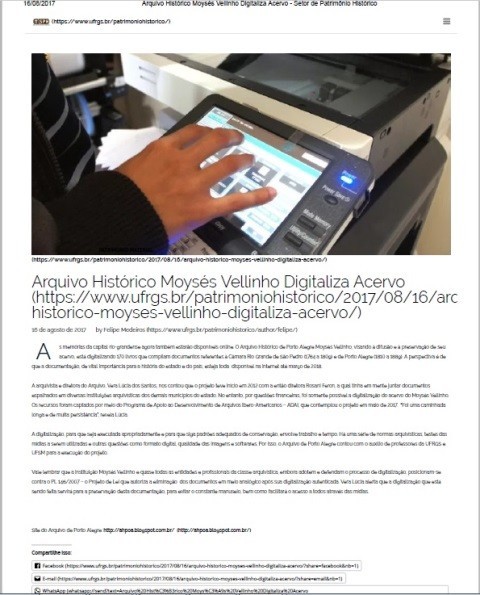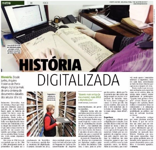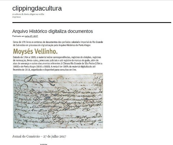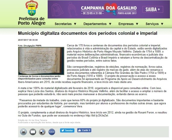 O Projeto Interinstitucional Preservação e acesso aos documentos das Câmaras de Rio Grande de São Pedro e Porto Alegre 1764 – 1889 (n.º: 2015/015), do Arquivo Histórico de Porto Alegre Moysés Vellinho, foi comtemplado na XVIII convocatoria de ayudas a proyectos archivísticos – ADAI.