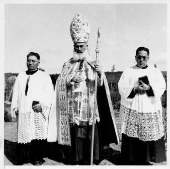 - Obispo Guido Beck de Ramberga junto a Pascual Alcapang y Antonio Cheuque, presbíteros de origen mapuche