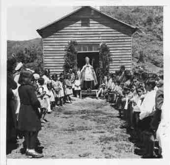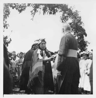 - Sacerdote capuchino entregando sacramentos en comunidad mapuche