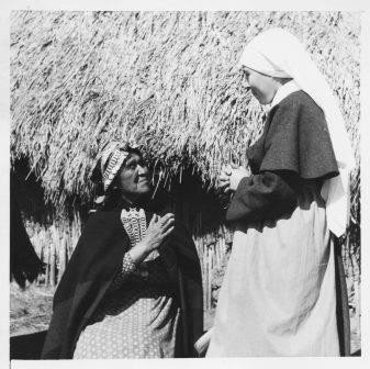 - Mujer mapuche en actitud de oración junto a hermana misionera