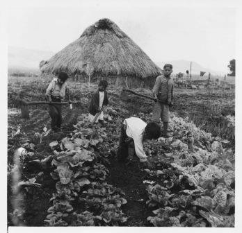 - Niños trabajando en la chacra junto a la ruca