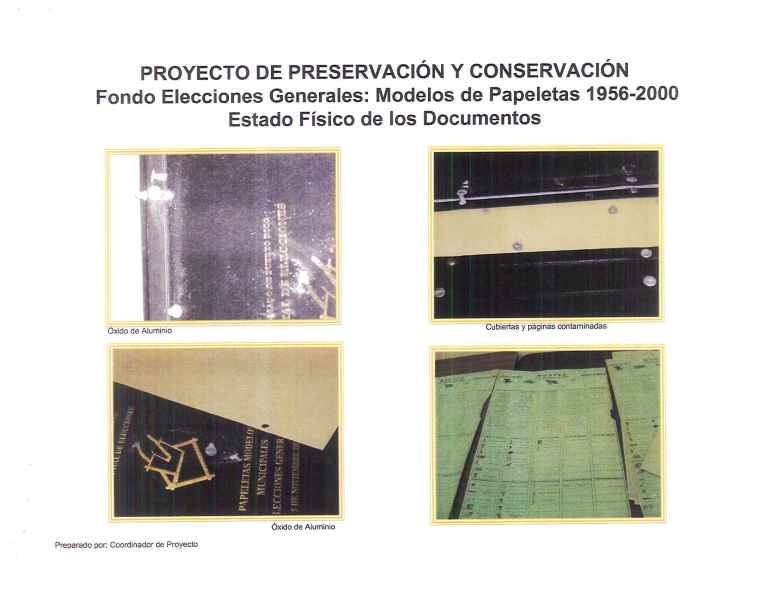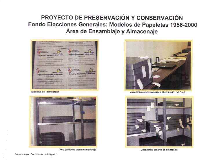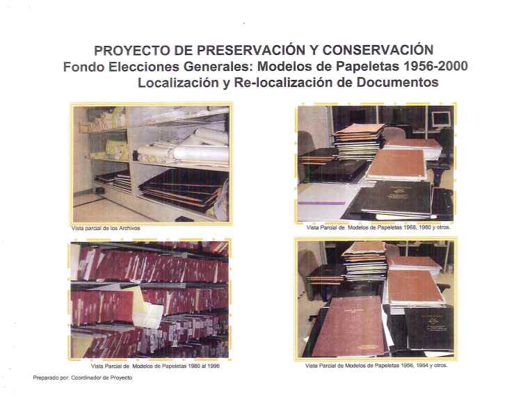 - Limpieza y acondicionamiento de los documentos contenidos en 120 juegos de papeletas (cada juego contiene 110 folios)