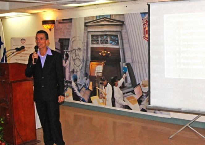 - El expositor Luis Alfonso de Gracia Diaz, Licenciado en humanidades con especialización en archivología, realizó su intervención con el tema «Experiencia en la Elaboración de la tabla de Retención documental»