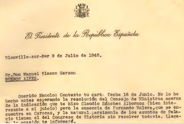 - Carta de Martínez Barrio a Blasco Garzón, exiliado en Argentina