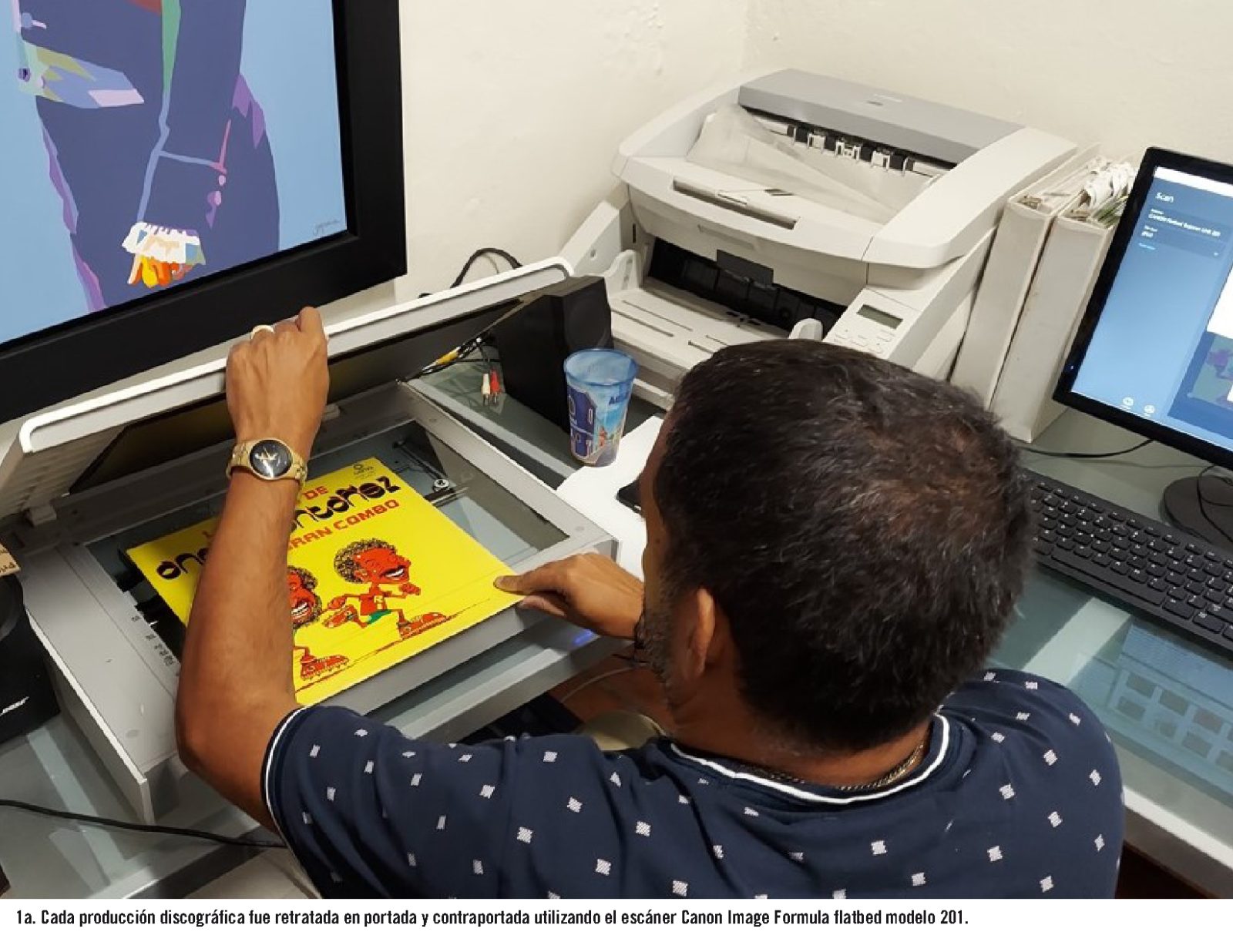 Tras la organización del inventario de discos en estricto orden alfabético por artistas o grupo, se procedió a retratar o escanear carátula y contraportada de cada producción.