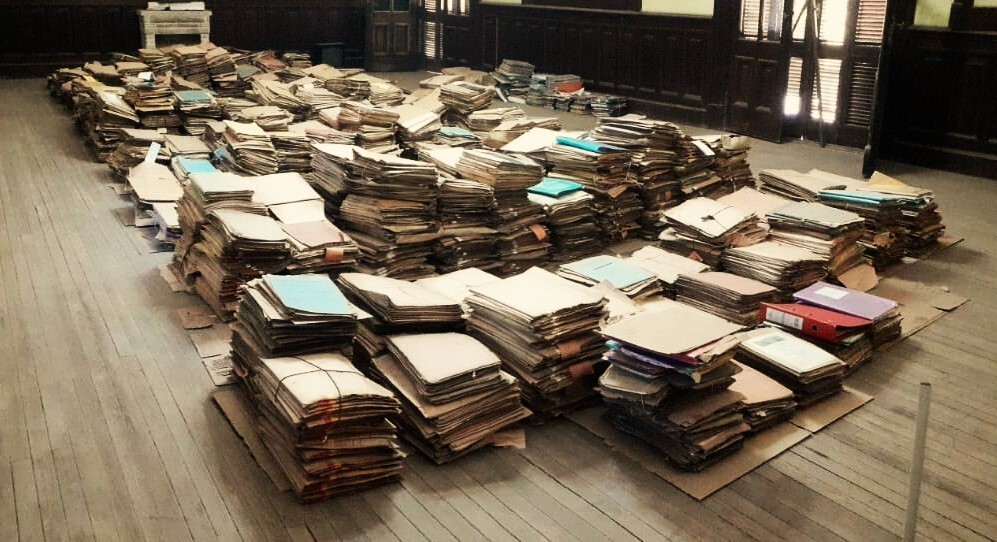 Ver documento- Estado inicial de las Historias Clínicas esparcidas sobre el suelo.