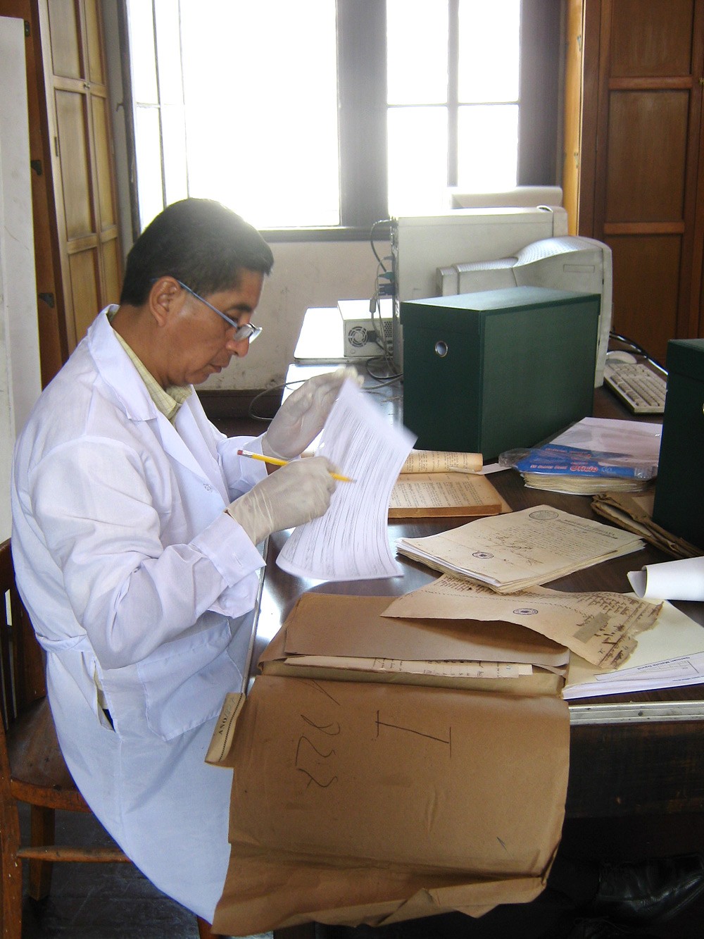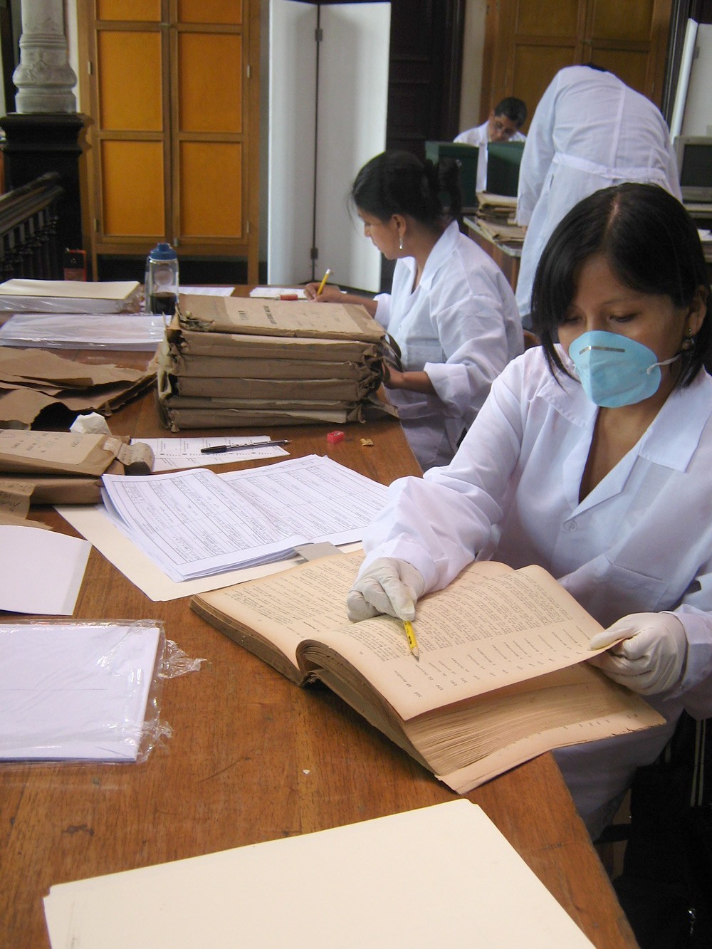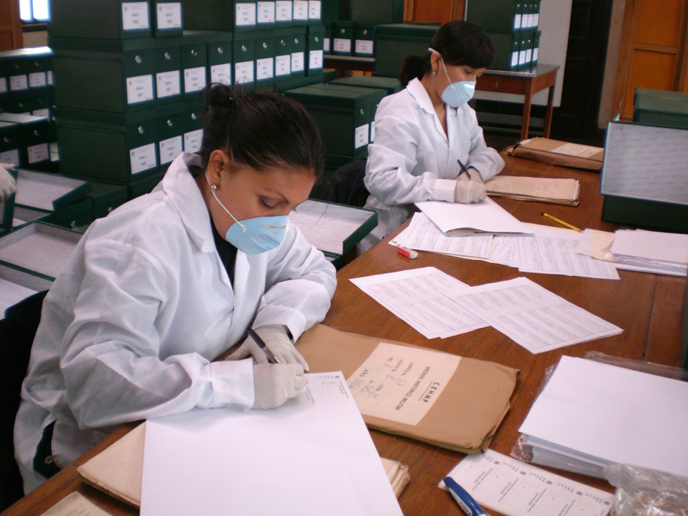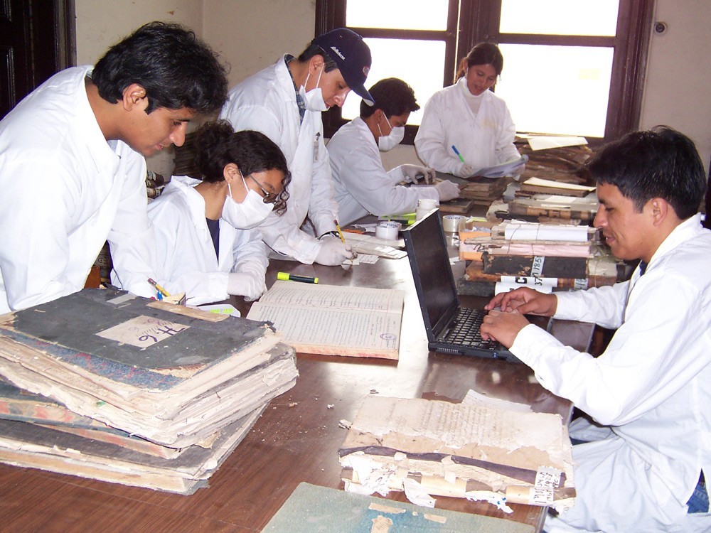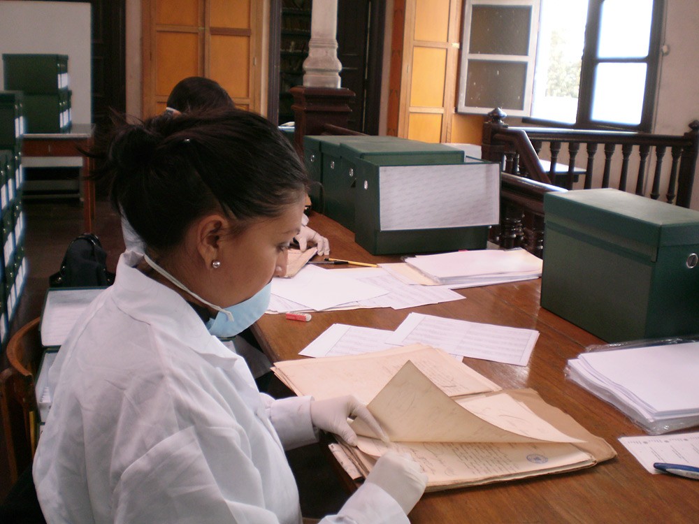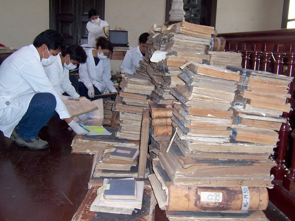 2. Conservación preventiva: se evaluó el estado de conservación del papel que sirve de soporte para documentos, identificándose aquellos que se encontraban con mayor deterioro, principalmente por presencia de hongos, humedad, xilófagos, quemadura por corrosión de la tinta y pérdida de soporte (lagunas). Tras la evaluación se procedió a su estabilización. Asimismo, se procedió al cambio de unidades de instalación.