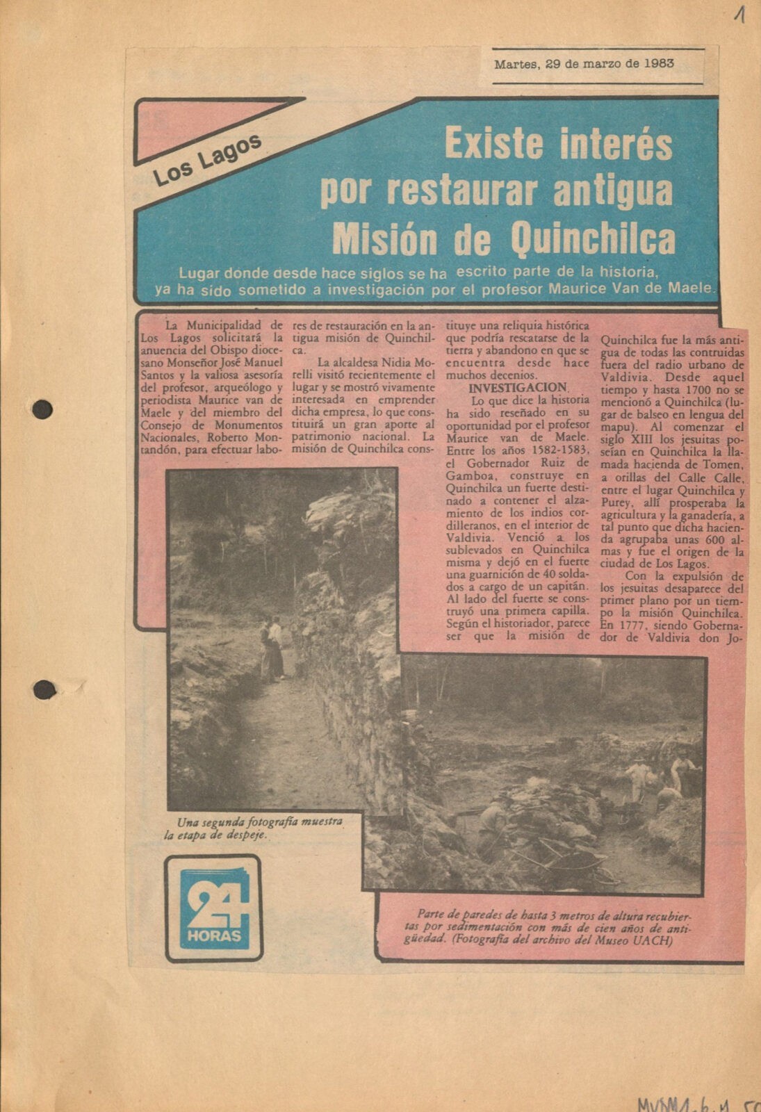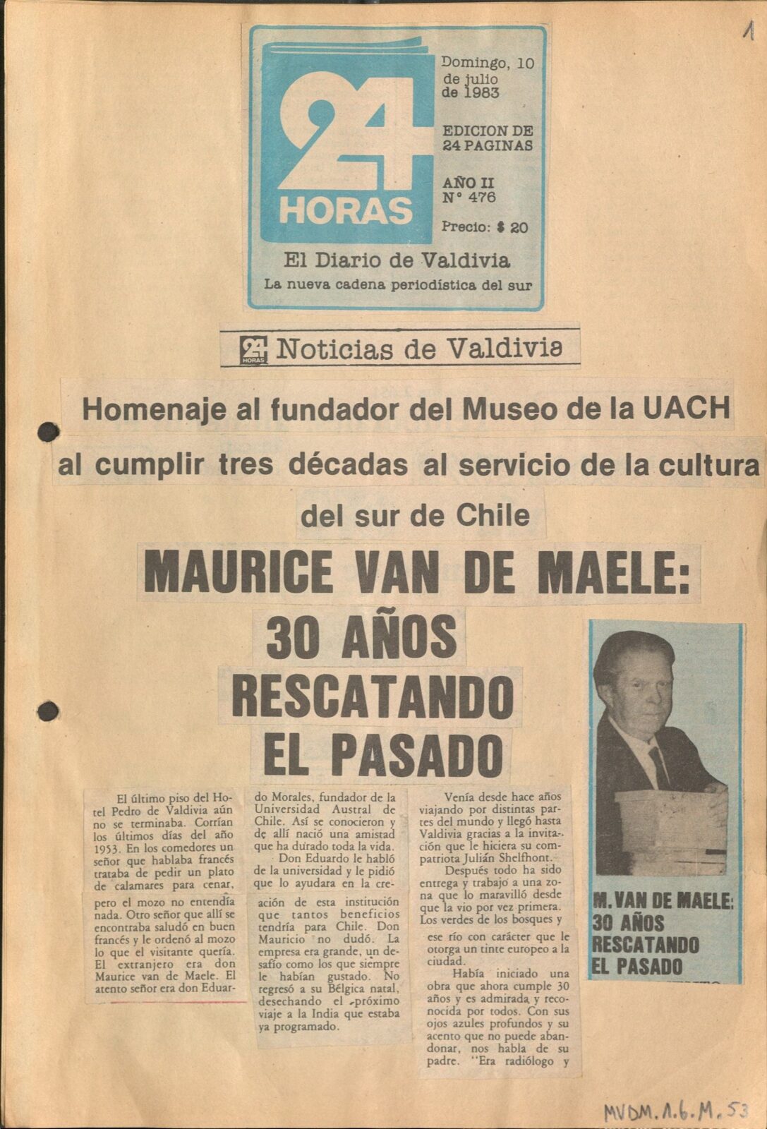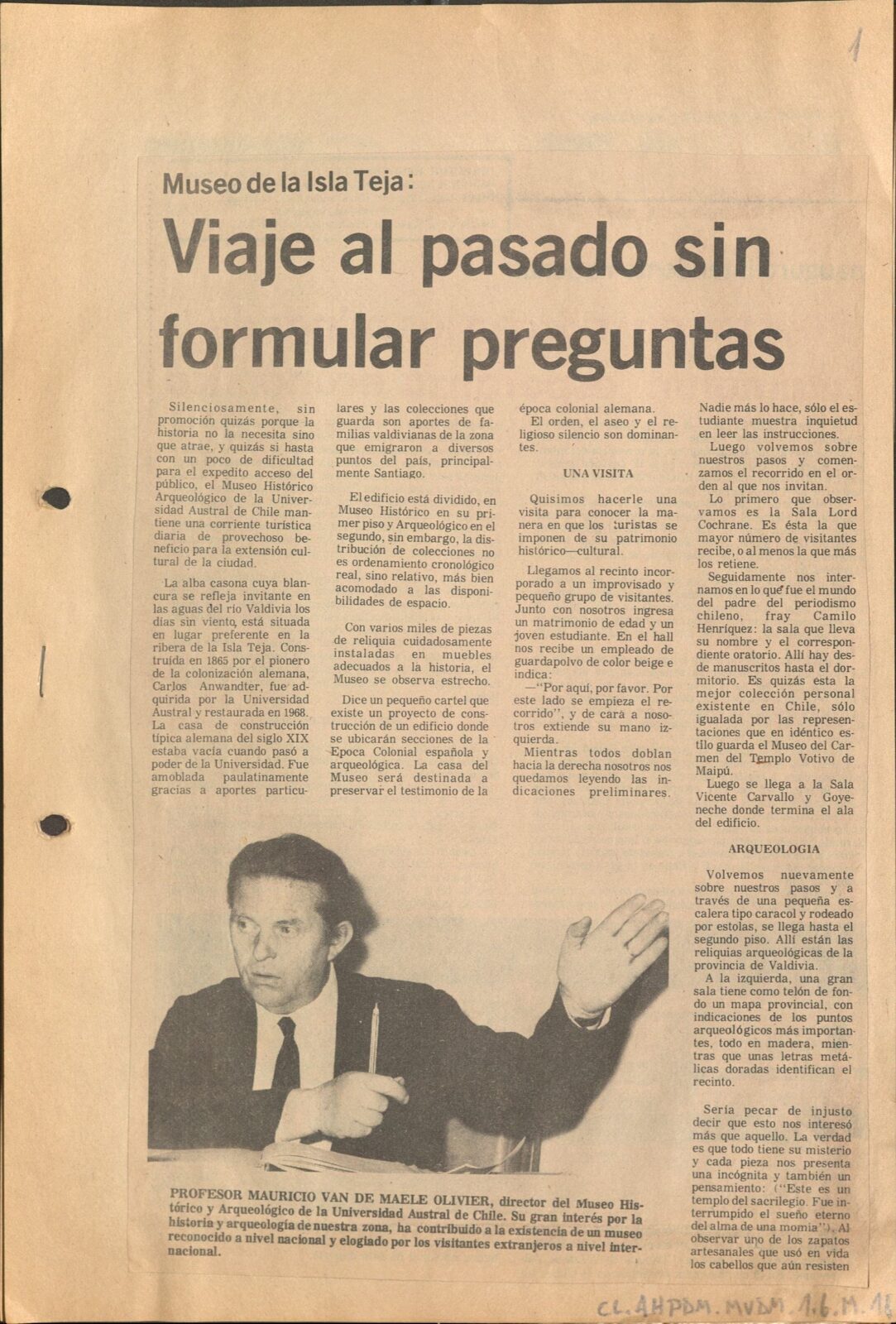 El proyecto “Rescate archivístico de las series documentales “recortes de prensa » y «fotografías» del fondo Maurice van de Maele (1964-1986) de la Dirección Museológica” busca dar acceso y preservar las series más importantes y en riesgo de un fondo institucional asociado a Maurice van de Maele, el fundador y primer director de la Dirección Museológica de la Universidad Austral de Valdivia, la unidad encargada de gestionar al patrimonio universitario.