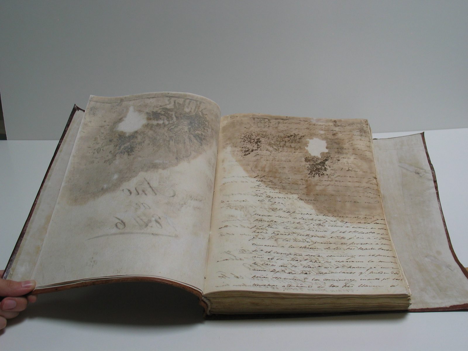 En este proyecto de Iberarchivos, el objetivo principal se centró en la restauración de 4 Libros de la colección de Libros de Actas del Cabildo de la Colegiata de Guadalupe de fechas extremas 1750-1920, que presentaban un cuadro peligroso de deterioro causado por humedades y hongos – lo que ha propiciado en 3 casos la desintegración de parte de las hojas y, con ello, pérdida de información.