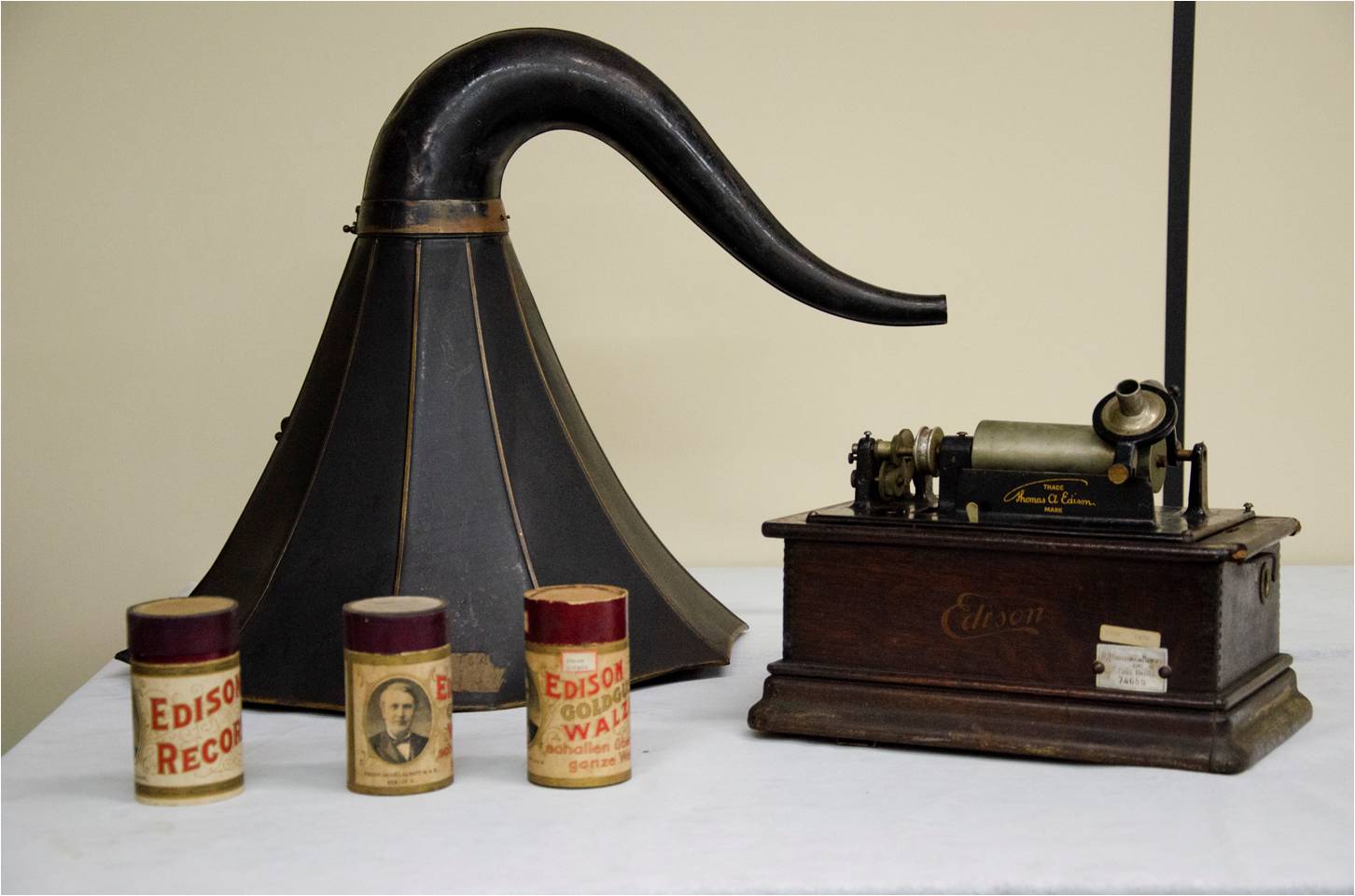 - ID 2019-008_01 Cilindros de Cera e Fonógrafo Edison. Foto: Artur Cunha