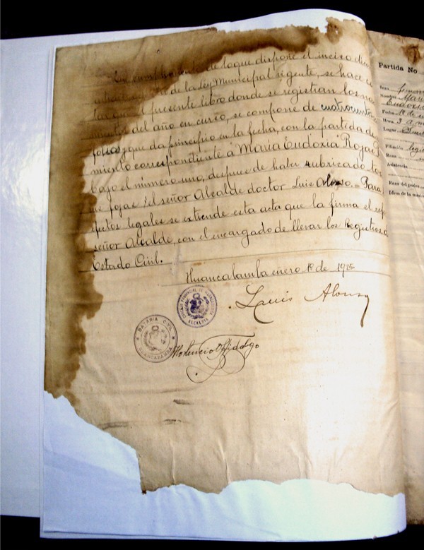 Con este proyecto se encuadernaron 273 libros de Registros Civiles (partidas de Nacimientos y Matrimonios) que datan de los años 1917 hasta 1977. Se organizaron los libros deteriorados y de acuerdo a sus respectivas secciones se han formado legajos y se integraron con su respectiva signatura en las estanterías a las que pertenecen.