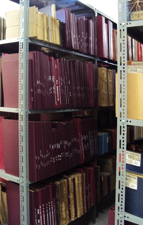 - Libros de Registros civiles conservados mediante el programa ADAI ubicados en estanterías