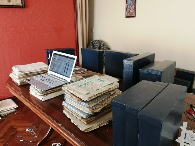 - Fotografía de cajas que contienen documentos del fondo Relaciones Exteriores