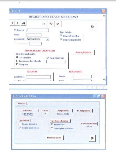 A-) La digitalización del número de boleta de seguridad; el número de serie de la boleta de seguridad; el número de reproducción y el tipo (fotocopia o testimonio); el número de boleta asignada; el tipo de boleta (de Bienes Muebles o de Bienes Inmuebles); el estado de la boleta de seguridad.