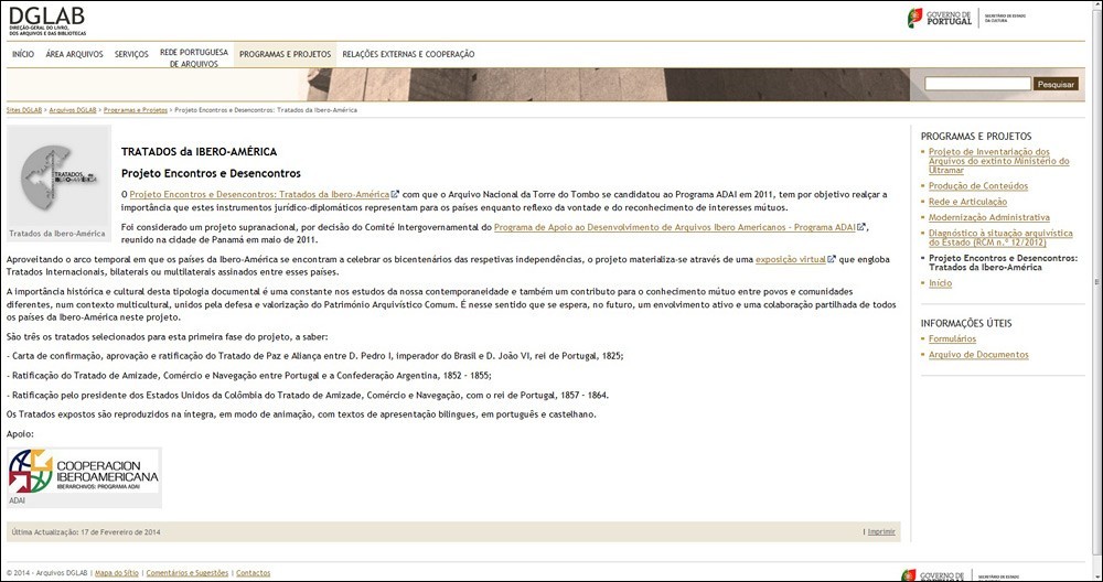 El proyecto Encontros e desencontros: Tratados da Ibero-América pretende resaltar la importancia que estos instrumentos jurídicos- diplomáticos y son la representación y reflejo de la voluntad y reconocimiento de intereses mutuos.