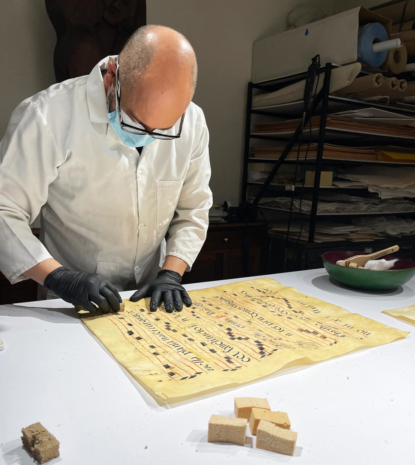 - Se realizó limpieza con gomas vulcanizadas a los bordes de cada una de las páginas. Sobre las imágenes y textos se utilizó brocha de pelo suave para remover polvo y suciedad acumulados