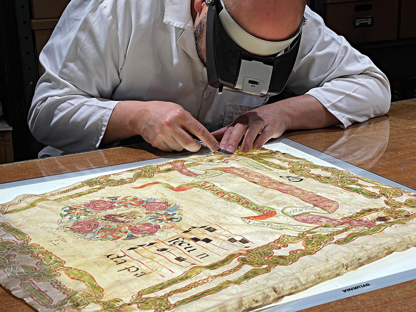 - Mediante los métodos de tensión con pinzas perimetrales y peso controlado se recuperó el plano de los pergaminos