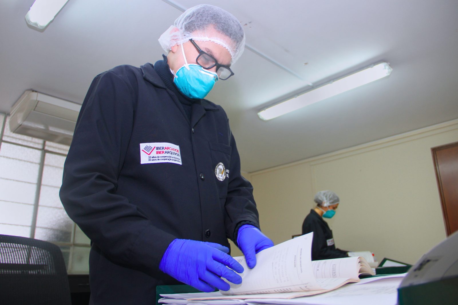 - Personal del proyecto leyendo las actas de Registro de los Consulados