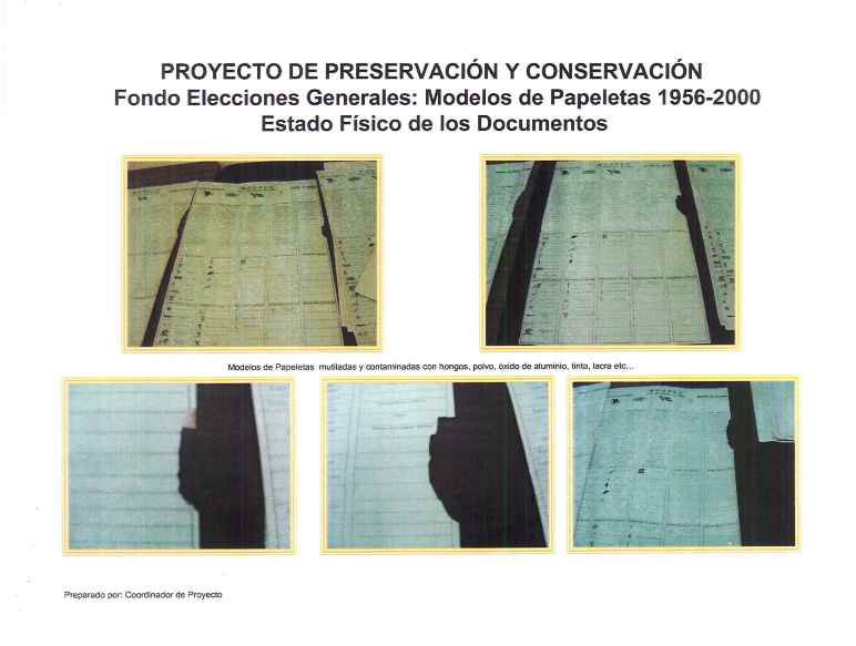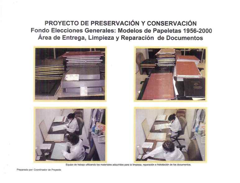 - Limpieza y acondicionamiento de los documentos contenidos en 120 juegos de papeletas (cada juego contiene 110 folios)