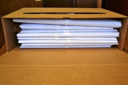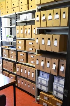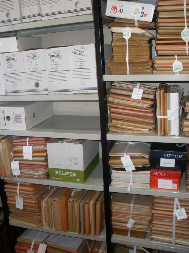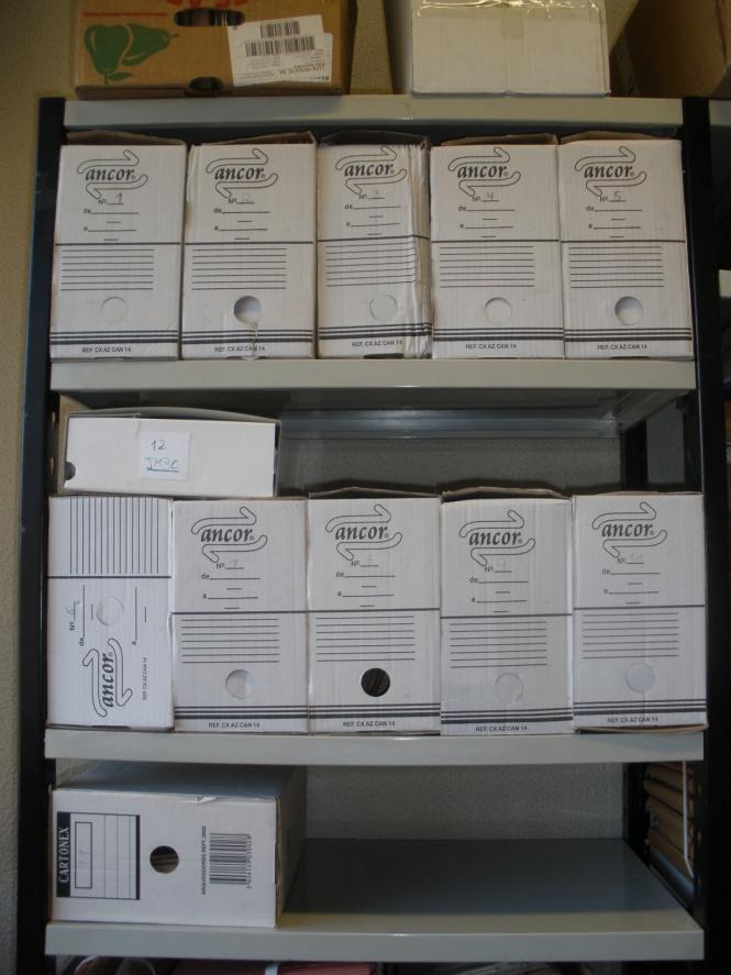 - Aspecto parcial de los estantes con los archivos empaquetados