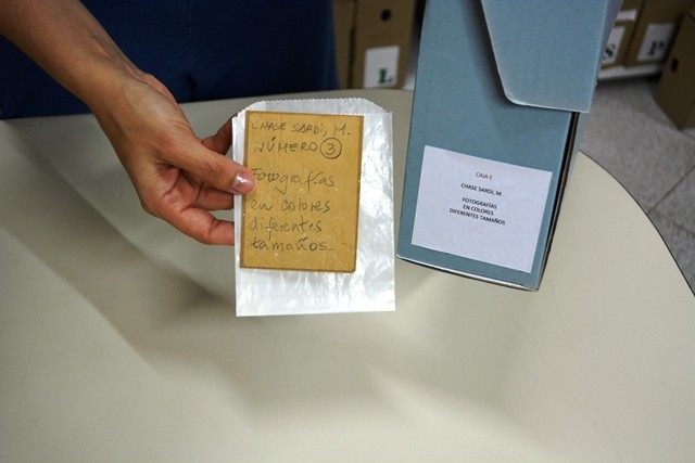 Los trabajos debían respetar y mantener no solo a la materialidad de la colección, sino también la identidad y el orden que Miguel Chase-Sardi impuso a su acervo, ya que nos encontramos con escritos de puño y letra del antropólogo, etiquetas de cajas, marcas de lápiz en el reverso de algunas fotografías, detalles de sitios geográficos, personas identificadas, comunidades, reuniones, datos el investigador conocía y anotó en diferentes tipos de contenedores como sobres, álbumes de positivos y negativos. Mantener dicha información fue un aspecto que condicionó el orden y organización del trabajo.