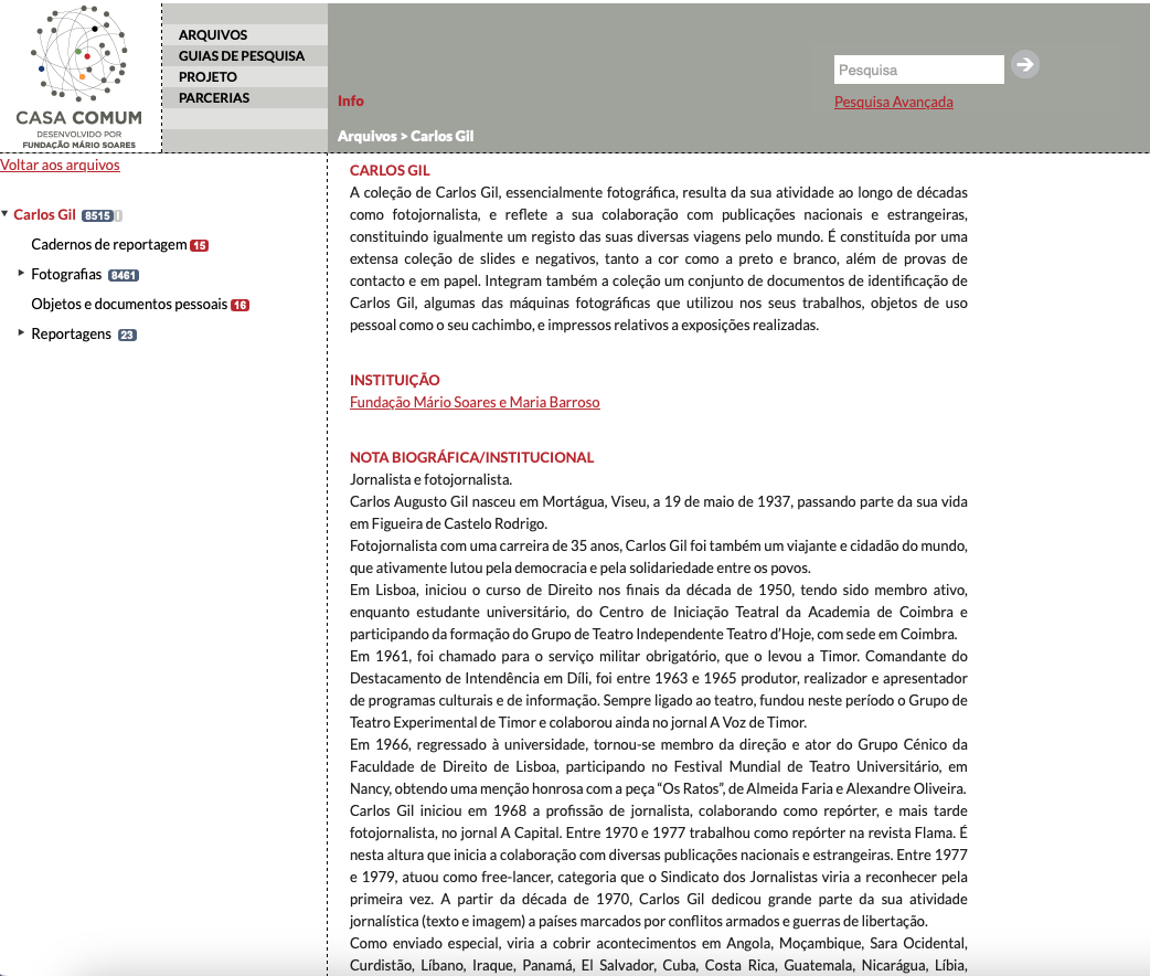 Como principal resultado, salienta-se a disponibilização online de mais de 5.000 fotografias e textos de Carlos Gil – incluindo reportagens e cadernos de viagens – através da plataforma digital Casa Comum.